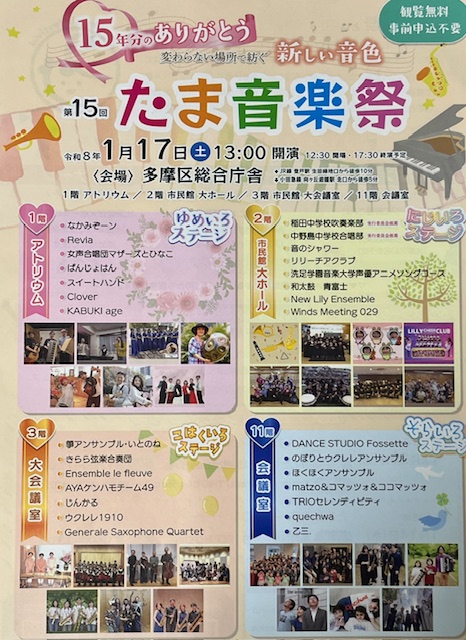 2026年1月17日(土)川崎市多摩区総合庁舎で「第15回たま音楽祭」が開催されました。
